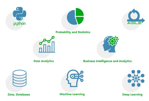 I Learned expert-level Python with related packages like Pandas, Numpy, Scipy, for data wrangling. I can use Matplotlib or Seaborn for visualization but sometimes Tableau is useful for understanding the data and for quick insights.